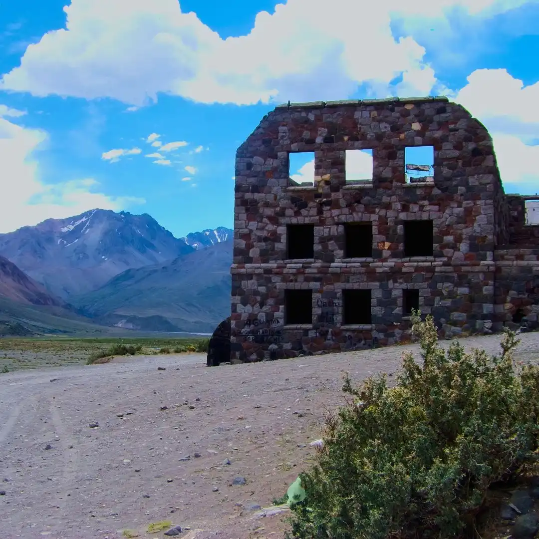 You will visit the town of El Sosneado and its mineral spring, then be amazed by the high-altitude Sosneado Lagoon, a natural mirror reflecting the grandeur of the Andes. The adventure continues to the ruins of the legendary hotel and its natural hot springs, where you’ll have free time to relax in warm waters embraced by mountain silence. Along the way, you’ll encounter native flora such as jarilla and algarrobo, as well as guanacos, foxes, and mountain birds. The day ends at a rustic mountain lodge, enjoying the authentic flavors of local cuisine.
