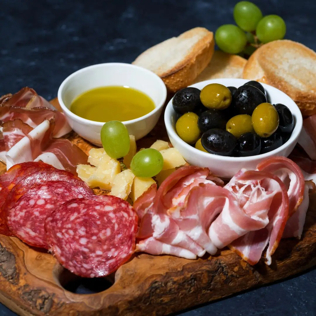 ✔️ Cold cuts platter and one bottle of wine to share between two people